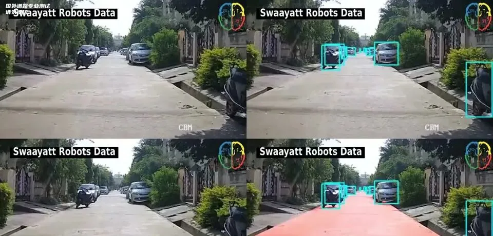 印度自动驾驶汽车的摄像头系统识别车辆和行人。