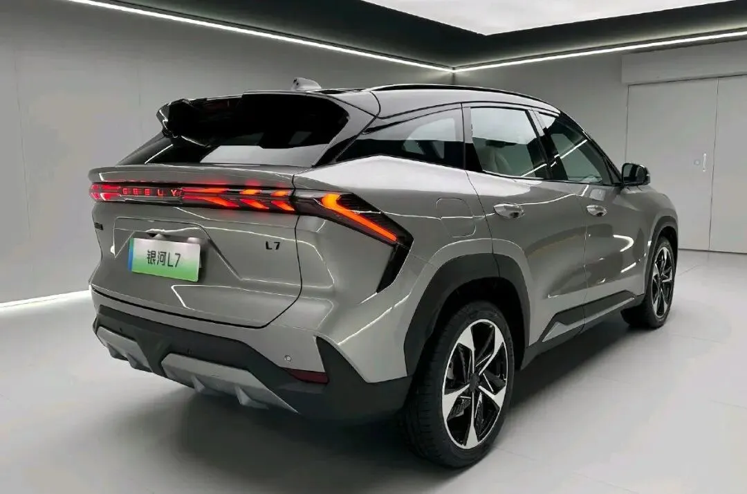 "全新吉利银河L7以未来感设计震撼登场:犀利灯组如蓄势待发的眼神,贯穿尾灯点亮夜空,三联巨屏重构驾控体验,纯电与混动双模式无缝切换,用科技与舒适重新定义新能源SUV标杆。"