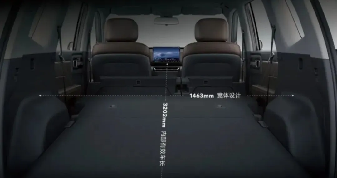 还有 83%的超高 “得房率”,车内实际能用的空间直接拉满。1527mm的横向宽度,990mm的座间距,能让175cm的成年人轻松翘二郎腿了。
