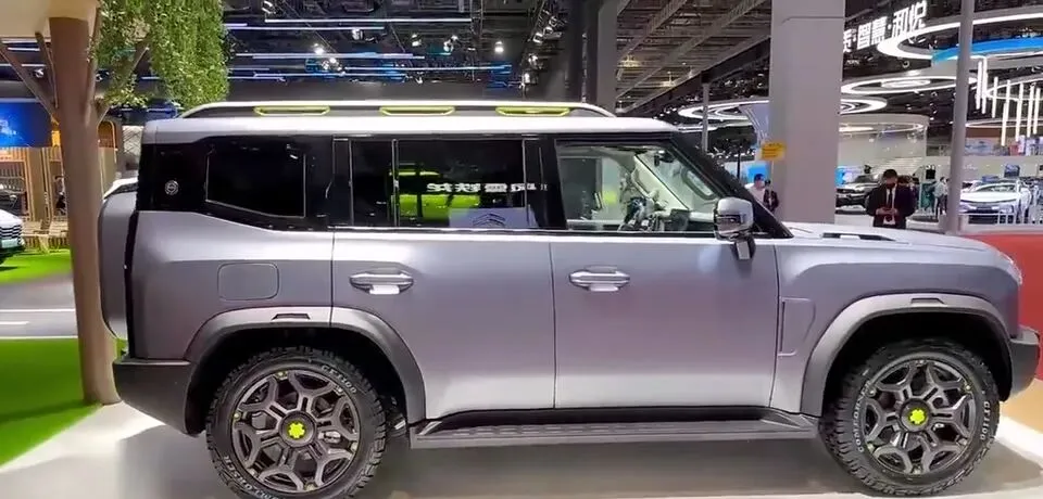 先说捷途旅行者。它的外观就是那种“方正硬朗”的路线,灰色车身、外挂备胎,轮胎花纹粗犷、轮毂造型也挺特别——说白了,你停在商场门口,它自带“我能去野”的气场。