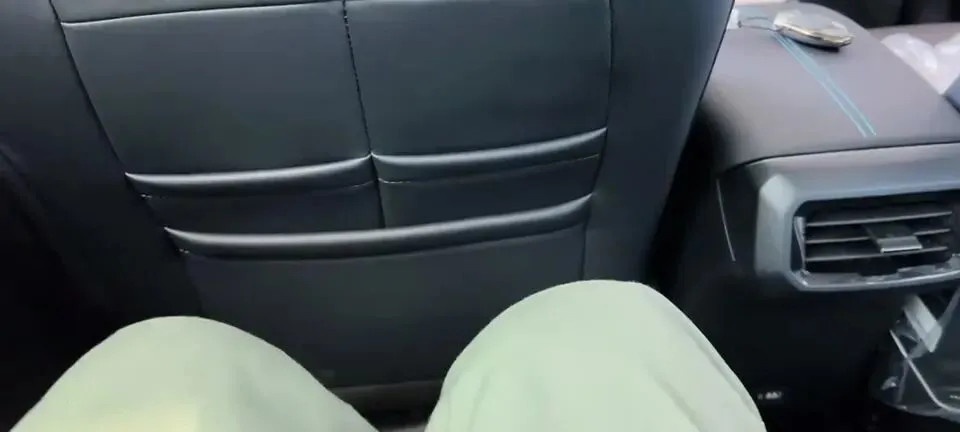 我实际坐进后排体验(前排座椅调整好之后),后排腿部空间剩余两拳多,作为一台小型SUV来说,这样的空间表现真的是有点出乎意料。这点必须给GS3大大的好评:它不是“能坐”,是“坐着不憋屈”。