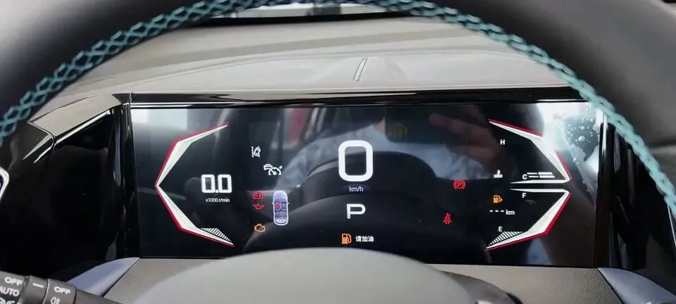 仪表这块,这个液晶仪表其实并不是全尺寸的,只有中间这块是液晶的,尺寸是7英寸。好消息是:并不影响观感;但中控屏就有点克制了——中控屏尺寸只有10.25英寸。