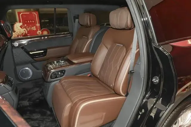 从车身规格来看,新车是标准的全尺寸SUV身形,整体气场十分强大。车身采用非承载式车身结构,这也是硬派高端SUV常见的配置,既能保证越野通过性,又能提升整车刚性与行驶质感。车身侧面线条沉稳大气,细节处的专属标识,进一步凸显它的尊贵身份,不管是日常出行还是正式场合使用,都有着足够的排面。 进入车内,豪华感与精致感直接拉满。内饰采用高端材质包裹,搭配专属的设计风格,视觉与触感都属于顶级水准。车内座椅布局合理,无论是主副驾还是后排乘客,都能享受到出色的乘坐体验,舒适性配置十分到位。车机系统功能全面,配合定制化的内饰细节,让车内既有豪华氛围,又有专属的尊贵感,完全对得起它超豪华的定位。