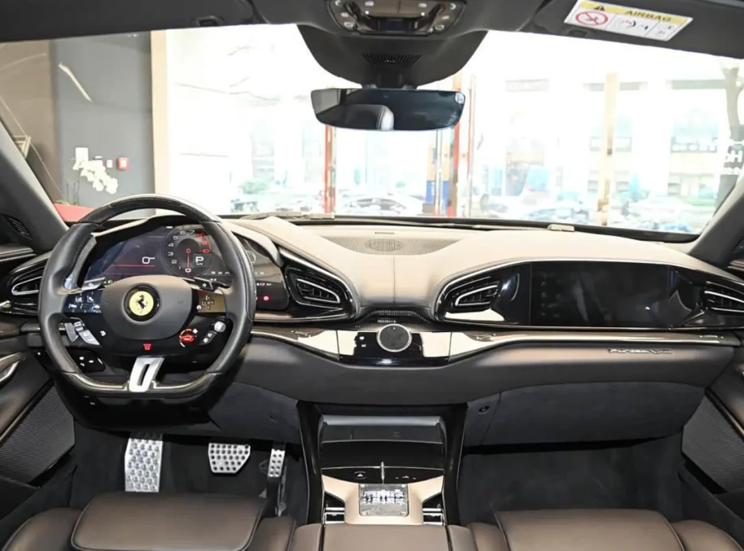 我坐进车里.看了一.下局部照片,内饰延续了法拉利那套以驾.驶者为中心的风格,方向盘上依旧是.满满的功能按键,那个红色启动键太骚气了。中控取消了.大屏集中设计,整个.车厢.更简洁、更机械感。然后副驾驶那边多了个液.晶屏,法拉利最近几.年都在玩这个,乘客也能.看到转速、速度这.些。用料这块儿我稍微敲了两下金属饰板——是冷的,是真铝,不.是.塑.料喷漆那.种糊弄人的。