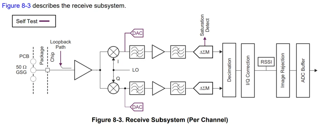 图3 接收子系统AWR2243 接收子系统由四个并行通道组成。单个接收通道包含低噪声放大器 (LNA)、混频器、中频滤波、ADC 转换和抽取电路。所有四个接收通道均可同时运行,并提供单独的断电选项以优化系统。与传统的纯实数接收器不同,AWR2243 器件支持复杂的基带架构,该架构采用正交混频器以及双中频和 ADC 链,为每个接收通道提供复杂的 I 和 Q 输出。AWR2243 专为快速线性调频系统而设计。带通中频链具有可配置的 175 kHz 以上的下截止频率,并可支持高达 20 MHz 的带宽。