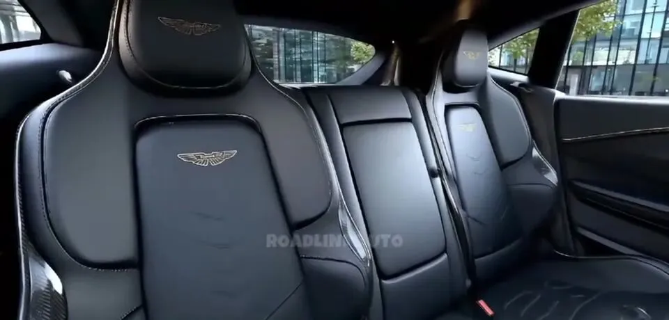 最后的最后聊定制。原素材写得很清楚:提供多种定制选项,包括轮毂颜色、独特的轮毂设计、内饰材质选择、性能提升,以及专属的阿斯顿•马丁个性化套装。
