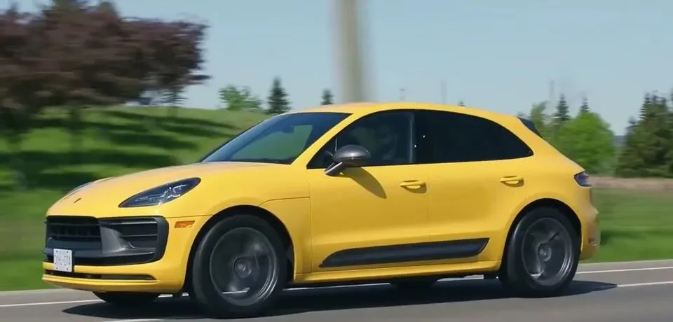 黄色保时捷Macan在道路上行驶