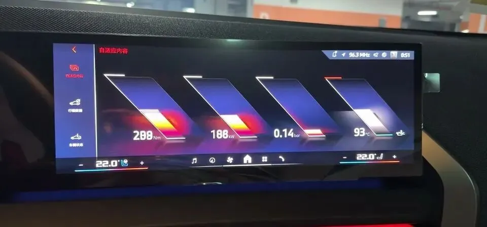 至于车机和氛围,它也没打算装斯文。运动模式下,屏幕及灯带会切换为红蓝相间的主题,M元素车机界面也会实时显示车辆的动态信息。