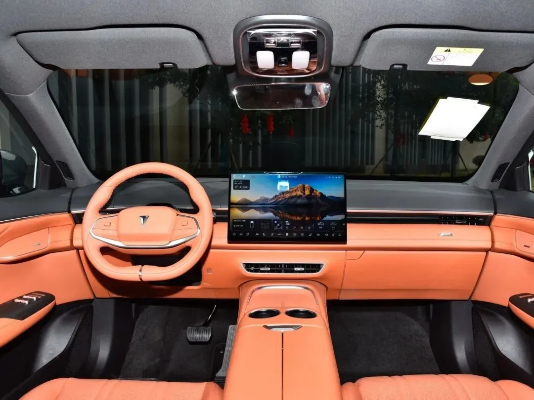 然后坐进车里的时.候,我.第一反应就是——这内饰真不是15万.级该有的。材质真的不错,上面软,下边.也.软,中间是皮包,门板我敲了.一下,闷声挺扎实。中控是典.型的新能源简洁风,一个向.日葵屏,可以旋.转.的那种,用起来挺顺滑。但是讲真,空调出风口的.塑料.镀铬有点儿“毛坯房”味儿,这个细.节厂家.完全可以再抠一抠。方向盘手感挺粘手的,我个人挺喜欢这.种粗.一点的握.感。