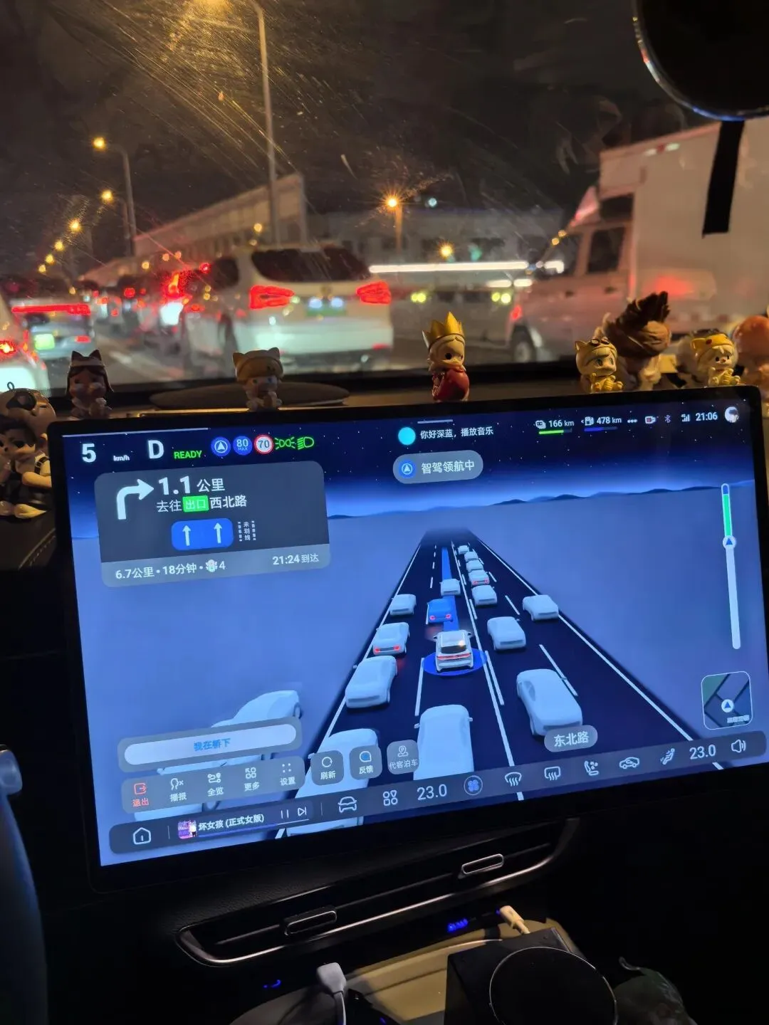 再说重.点——驾.驶。这个.车的底.盘真给.我点惊喜。是那种很.整的支撑感,过弯车身.不散,不.过滤震就属于有一点点硬的类型,细碎颠簸能感觉到.但不打手。转.向.挺有味儿,阻尼合适,回中线.性。加速部分我特地.试了一脚,纯.电模式下响应很快,推背感明显,官方.零.百6秒多吧我没准表,看仪表的时候已经超了点限速。增程模式下声音控制得不错,不.会.那种“干.吼不走”。