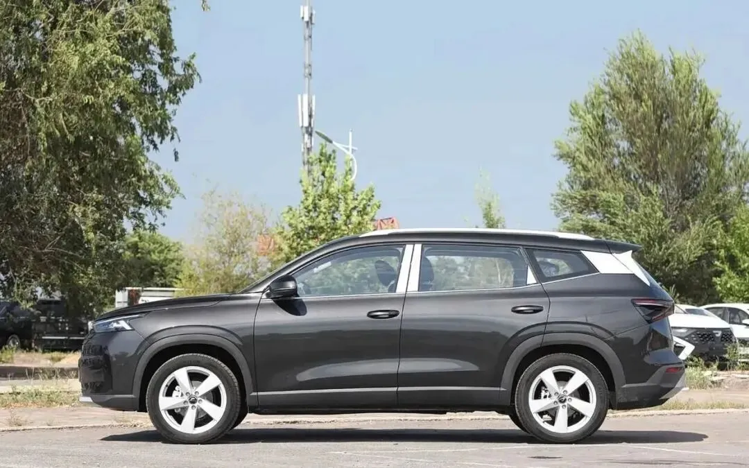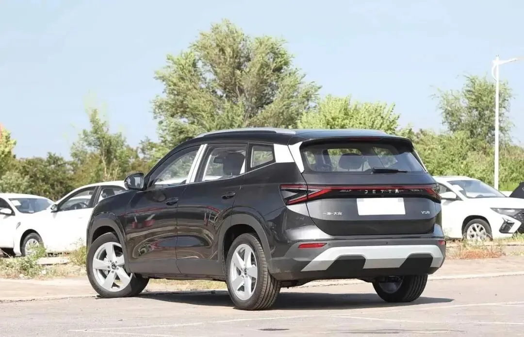 再来看车身侧面部分,车身侧面是捷达VS8设计功力的集中展现,悬浮式车顶通过隐藏式D柱设计营造出轻盈的悬浮效果,搭配熏黑处理的车窗边框,提升了整车的时尚感,4629mm×1851×1624mm的车身尺寸,搭配2731mm的超长轴距,形成1:0.618的黄金窗地比,带来视觉舒展感,同时为车内空间奠定了坚实基础。侧面线条简洁利落,一条贯穿式腰线从A柱延伸至尾灯,勾勒出硬朗的车身轮廓,让整车在静止状态下也能呈现向前俯冲的动态张力,打破了传统家用SUV的沉闷感。