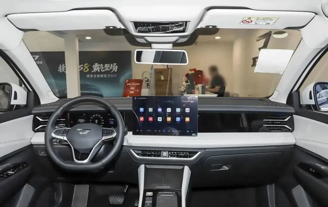 进入车内,捷达VS8的内饰采用务实简约的设计风格,兼顾舒适性与实用性,整体布局规整有序,符合家用SUV的定位。内饰材质以搪塑材质为主,中控台配备14.6英寸悬浮中控屏+10.25英寸液晶仪表,组成双联屏交互系统,支持OTA升级、方言语音控制,集成高德地图与AI应用,操作流畅且实用,空调控制区域保留实体旋钮,符合传统用户的操作习惯,盲操作更便捷。空间表现是捷达VS8的核心优势之一,2731mm的超长轴距让车内空间极为充裕,采用5门5座布局,前排座椅支撑性良好,主驾配备六向电动调节+四向气动腰托,可根据驾乘者体态动态调整支撑力度,缓解长途驾驶疲劳。