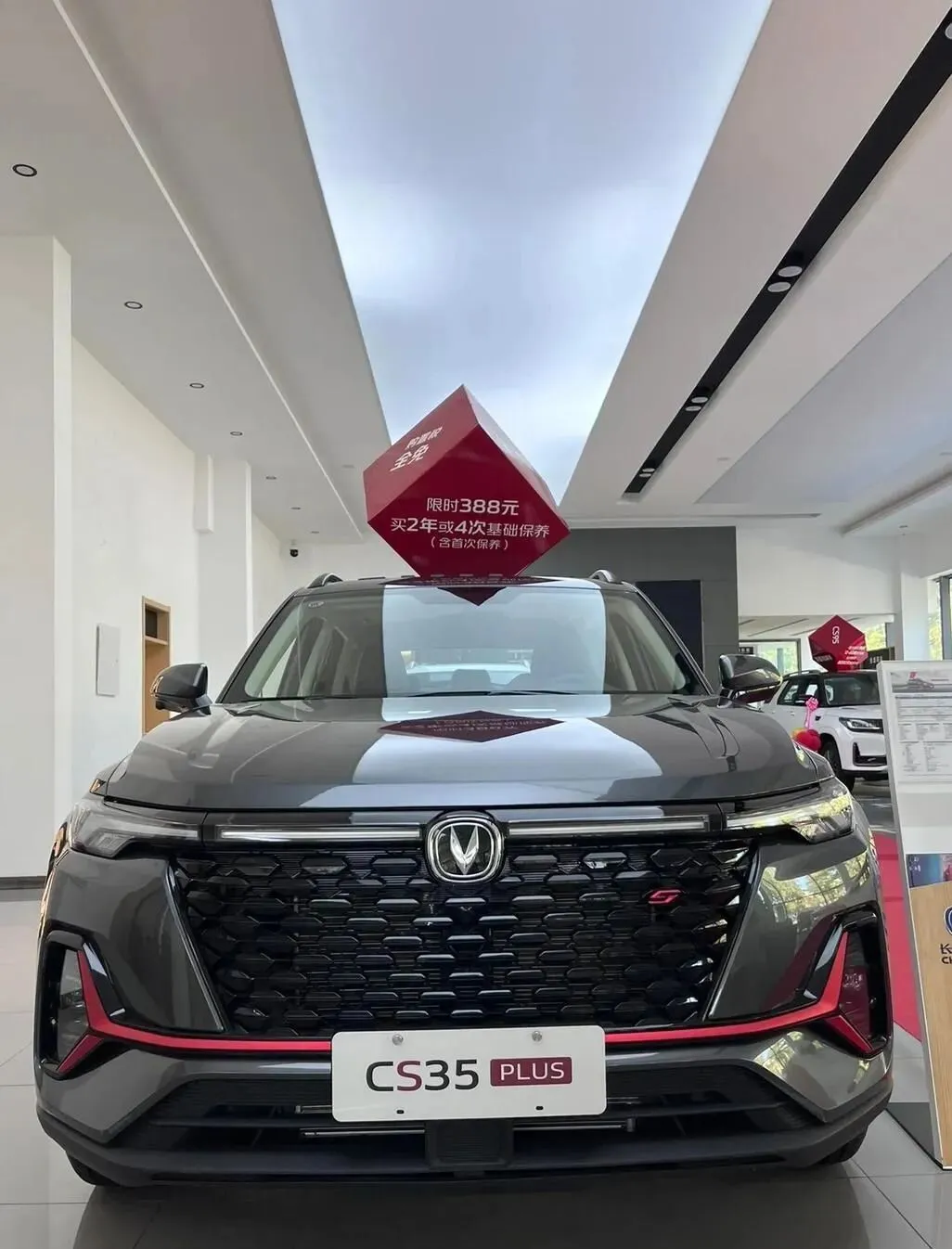 我先看的.是.长安CS35 PLUS,外观这个车真的不.赖,就是有一种干练的.气质。前脸那一.条贯穿的镀铬.饰条,再.配个大灯,看着特精神,不.浮夸。细节也很实,车门一关那.个声音——“咚”一下,有高.级感,不.是那种空壳子的感觉。