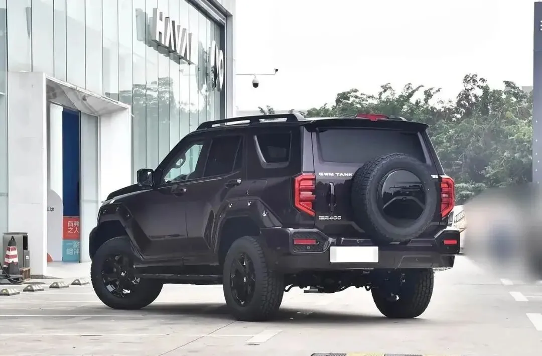 我们首先来看新车的外观设计方面,坦克400的车头采用“方正+棱角”的设计语言,前脸以双辐熏黑中网搭配平直包围,气场接近奔驰大G级。机甲风格的前保险杠采用外露式铆钉设计,配合可主动开闭的进气格栅,既满足越野时的散热需求,又兼顾城市行驶的空气动力学效率。LED日间行车灯与自适应远近光大灯的组合,使车头在夜间行驶时辨识度极高,而大灯高度调节功能则进一步提升了实用性。