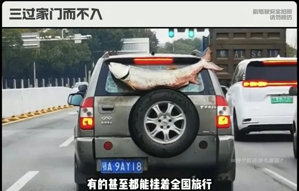 作为一个开了十几年车的人,我发现了一个规律:当你看到有车把鱼挂在车外时,你就看着吧,这车至少要把整个城市都得逛一圈。