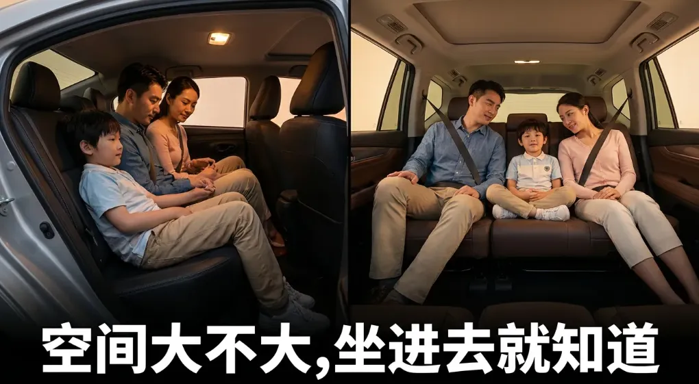 后排头部和腿部空间更充足,视野更开阔,乘坐更舒适,后备箱更能装,适合多人和行李