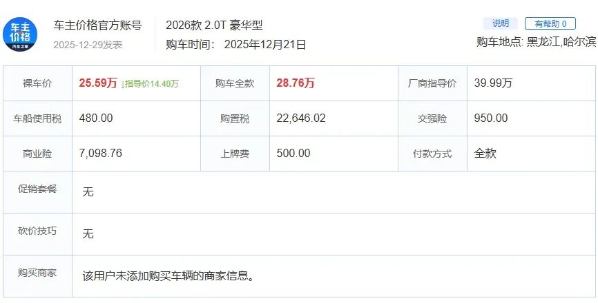 凯迪拉克SUV扛把子XT5终于迎来了大换代,美式油腻风格的“浴皇大帝”全面拥抱了新时代。新车上市,市场也给出了积极的反馈,不仅成为了现在凯迪拉克的销量支柱,也让凯迪拉克摆脱降价的泥潭,正式迈入了一口价时代。那也有不少小伙伴说了,虽然这个XT5看起来帅气又现代,但销量就是一直在4000左右徘徊,无法迈过代表一线豪华的销量过万台。那咱们今天就来扒一扒,这个新换代的2026款凯迪拉克XT5值不值得看?值不值得买?与此前的美系车型不同,采用一口价的XT5价格并未像此前一样出现较大的波动,不少地区都是在一口价的基础上叠加少量的优惠。咱们就以卖的最好的豪华型为例,官方指导价39.99万,全款一口价26.59万,哈尔滨4S店还有额外的1万优惠,再加上车船税+购置税+交强险+上牌费,还有7000左右的商业险,落地在29万左右。有小伙伴可能也发现了这个盲点,官方说的是全款一口价,也就是说贷款就还能谈,还能再谈5000-10000不等的优惠,这就全靠个人魅力和能力了。美系车型在近年来做的比较好的一点就是配置和选装方面做的非常清晰,近年来很少有强制装潢的事情出现,谈谈可能还会有贴膜、免费保养啥的,可以参考一下。这里还有网友教大家一招,年底冲销量是砍价黄金期,多跑两家4S店,拿着同城低价截图跟销售耗,磨一磨就能再省5000,实在不行就说去隔壁看林肯航海家,销售立马松口。要是销售真不松口,咱就直接去看看航海家也行,然后把这招反过来再用一遍。凯迪拉克等通用系车型开启的一口价,可是给不少小伙伴都整懵了,XT5到底是合适还是不合适?还会不会有更大的优惠?先给结论,想买的现在就可以动手了,你现在能谈到的优惠,可能这一年变化都不大,上下浮动很难超过5000。凯迪拉克推出一口价,让自己产品的优惠非常的清晰透明,消费者和销售人员都不用互相博弈,省去了很多纠纷和闹心事;再就是官方一口价,可以稳住现在的二手行情,也能扭转美系车型总是突然大降价的印象。所以在现阶段,凯迪拉克的一口价都不会有大的改变,凯迪拉克暂时也没有其他能够撑起销量的车型,所以价格也就这样了。2026款凯迪拉克XT5可以说是大改款后的年度小改款,整体配置相较于2025款变化不大。最低配没有进行配置调整,其余版本增加的也都是诸如座椅加热、通风、可调节项等舒适性配置。大都会型为两驱版本,搭载FSD自感知可变悬架;豪华型在此基础上增加了Single-clutch智能单离合四驱系统,组成了蜂鸟底盘AIR;尊贵型和铂金型则升级搭载了RTD电子实时阻尼可调悬架、Twin-clutch矢量四驱系统和定制Brembo高性能六活塞制动系统,组成了颇受好评的蜂鸟底盘MAX,能一键切换舒适/运动模式,冰雪路况等复杂场景的稳定性有非常大的提升,也是最推荐的必选配置。26款XT5采用的是最新的内饰设计,可以说完全跟上了潮流,还做出了自己的特色,与其他豪华品牌的同定位车型感觉都不在一个时代。座舱设计相当简洁,全系标配33英寸9K曲面屏,搭配高通8155芯片,观感和流畅度方面肯定是没得说。再加上美系一贯的堆料传统,质感的下限是有保障的,内饰用料也扎实,中控台和门板上半部分全是软质包裹,摸起来细腻,再加上ANC主动降噪和AKG 15扬声器音响,静谧性也相当不错。座椅舒适性方面的配置也毫不吝啬,除最低配外,都标配了前排的通风/加热,顶配还带按摩,冬天不冰屁股,夏天不闷后背,相比BBA的抠抠搜搜,突然有点不太适应了。这次最大的提升就在后排,以前的XT5后排,又小又难受;现在的XT5后排,腿部头部空间变大,四驱车型也能做到中央地台全平,直接好评。可以说这次凯迪拉克针对XT5的换代更新,在内饰层面来看是相当成功的,也收获了车评人和车主的不少好评。整车智能和科技化提升非常大,但问题也不少,最多的就是关于语音识别和无线充电板过热的吐槽,还有小伙伴指出这套系统用的导航不是很准确,出现过错误的路线提示或信息缺失,需要等待官方的升级了。进入到国六排放标准时期,通用系车就失去了力大砖飞的灵魂。新车全系采用2.0T发动机,搭配通用9AT变速箱,还有着48V轻混系统。这套系统大家应该很熟悉了,之前的别克和雪佛兰都在用,和其他相同定位的车型比,数据层面落后不少,官方零百两驱8秒,四驱8.23秒左右,比较一般的水准。问题也是常规问题,动力系统换挡慢,动力迟滞,以及2、3挡顿挫的问题一直都在,只能说够耐用,但不够丝滑。此外,48V轻混的耐用性不少小伙伴也存疑,就现阶段来看,通用的车型还没有有关轻混的问题出现。与CT5类似,XT5也主要通过底盘来做区分,三种可选 两驱、蜂鸟底盘AIR和蜂鸟底盘MAX。就官方数据层面来看差距不小,不少小伙伴在试驾后反馈,店里一般只有蜂鸟底盘MAX可以体验。就反馈来看驾驶信心强,脱困能力也强,无论是日常还是高速环境稳定性都很好,是必选项。那作为美系车,咱们就不得不谈谈油耗,中型SUV+车重大+四驱,即使有闭缸技术也没啥大作用,车主反馈称市区拥堵路况轻松上11-12L/100km,综合下来大概10L左右,虽然比老款美系车强,但加95号油,用车成本依然不低。2026款凯迪拉克XT5优缺点都相当明显,配置高、价格透明、外观内饰设计帅气、智能化表现还可以、底盘操控优秀,可以说是科技豪华的典型代表;但动力表现一般、品牌力稍差、保值率低,也是绕不开的硬伤。如果你追求性价比,看重家庭出行舒适性,喜欢帅气的外观和富