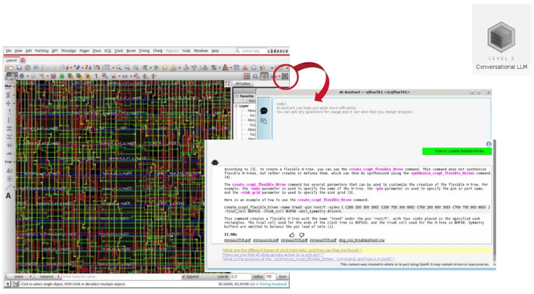这种能力来源于针对 Tcl 或 Cadence SKILL® 等专有语言微调的 LLM。企业专有知识亦可纳入向量数据库,使系统适配特定工作流程,从而持续提升系统能力。