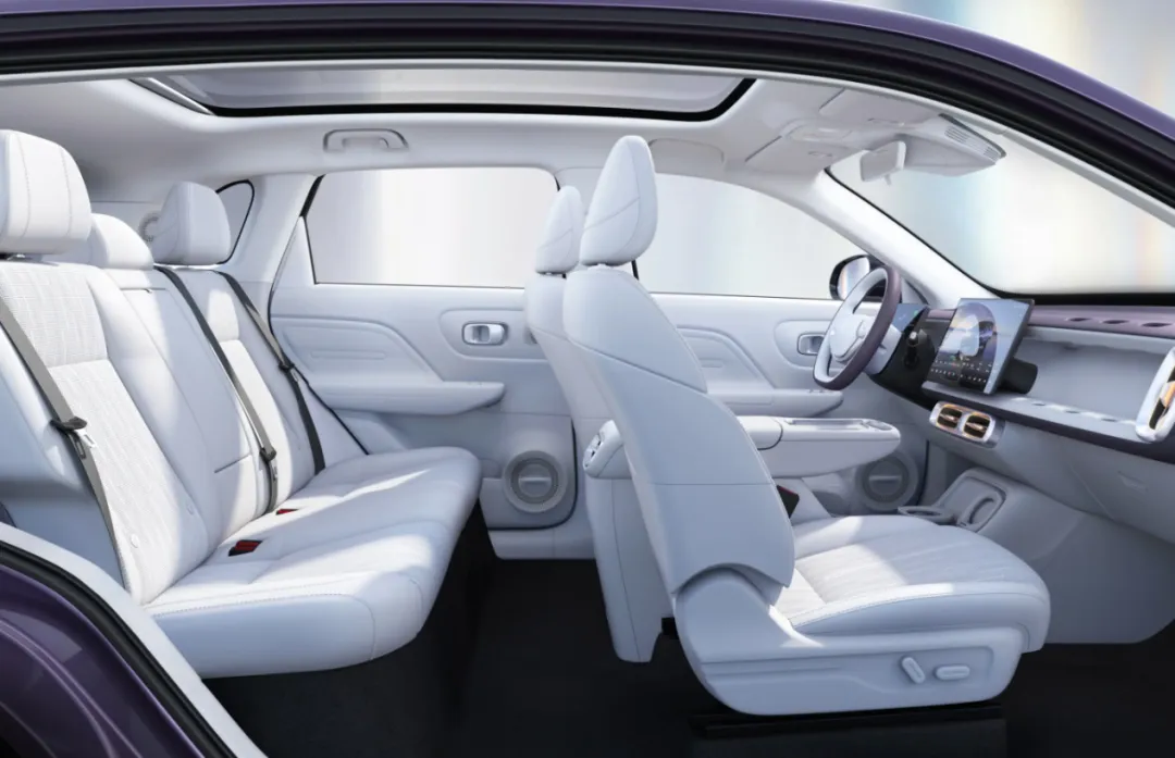 该车轴距2620mm,属于小型SUV范畴,但短前后悬设计让空间利用率极高,满员乘坐无明显压抑感。动力方面,该车提供两种版本,10万元左右可买到401km续航版本,搭载130kW前置前驱电机,峰值扭矩290N·m,0-50km/h加速仅4.4秒,动力充沛且平顺,适合城市通勤和近郊出行。