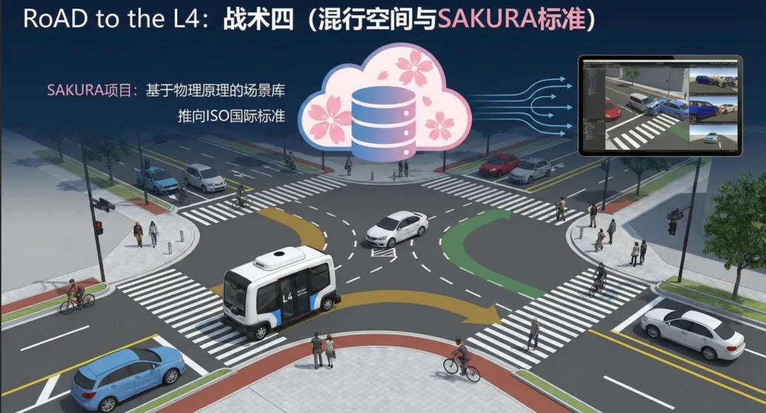 为了验证L4的安全性,日本推出了SAKURA(樱花)项目。这是一个极其庞大且严密的场景数据库。他们不迷信企业自己跑出来的数据,而是联合官方建立了一套基于物理原理的交通事故场景库(ALKS)。L4系统行不行,必须在这个国家级数据库里进行虚拟仿真和封闭场地测试。而且,日本正积极将这套SAKURA评价方法向ISO国际标准推销,试图掌握全球自动驾驶安全评价的话语权。