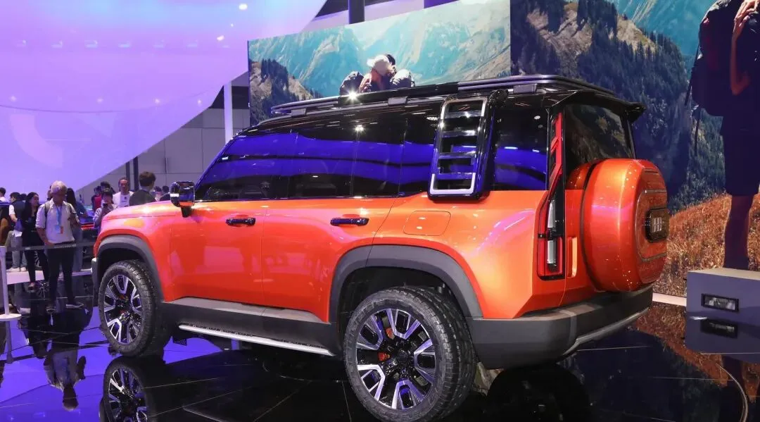 外观上该有的元素一个不.少外.挂备胎,车侧小梯子,车顶拓展平台,视觉冲击力.拉满。