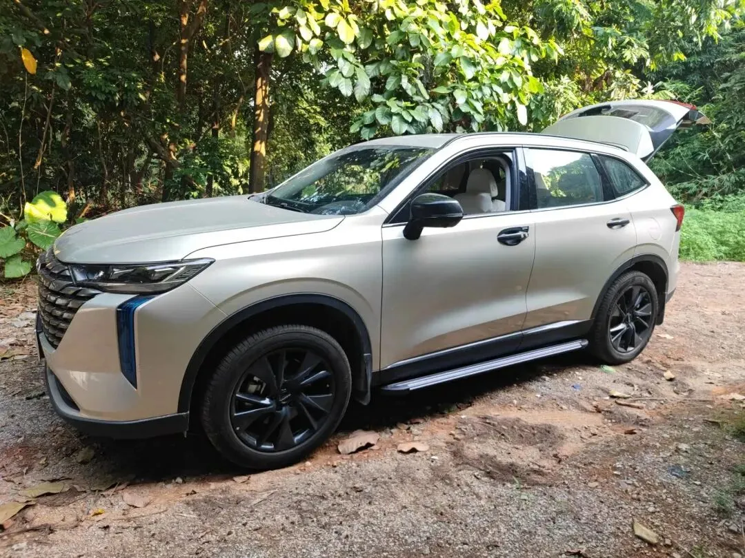 先看.外观哈,这车.我觉得.哈弗.真挺.懂国.人的,那个前.脸很虎,很厚重,再加.上大格栅,走的.不是那.种精.致路线,是成熟.稳重.的路.子。你远.远一看就.觉得一.股“硬汉”气质。然后这.个大灯.组我试.着摸.了一.下,缝隙.还不.错,比之.前老.款那种“指甲.能插.进去”的感觉.好多了。车侧面比.例挺.协调的,就是我.一直觉.得那.条腰线.有点太.高了,看着视.觉重.心往上.飘。尾部也.挺耐看,双出.的排.气装.饰虽然.是假.的,但气.势在那.儿。