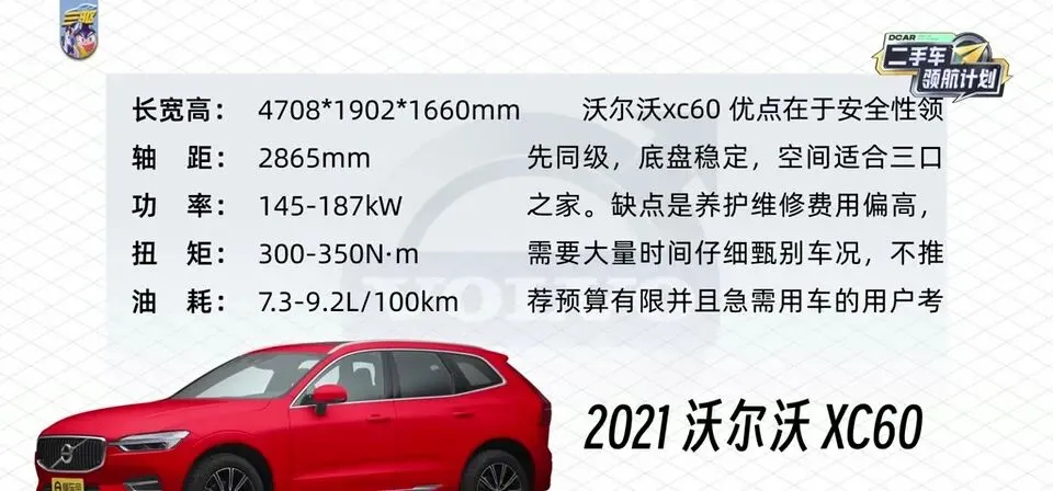 2021沃尔沃XC60,优点在于安全性领域,先同级,底盘稳定,空间适合三口之家。我个人对XC60的态度很明确:你如果把安全排第一,它确实有说服力。