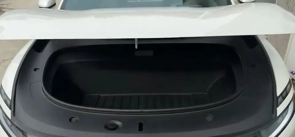 更有意思的是它还有前备箱。我也把手伸进去确认了,确实是前备箱的逻辑:小件、充电线、随车工具放这里,后备箱就干净很多。