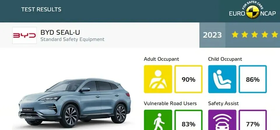 比亚迪宋PLUS在2023E-NCAP,车内人员安全评分为90分