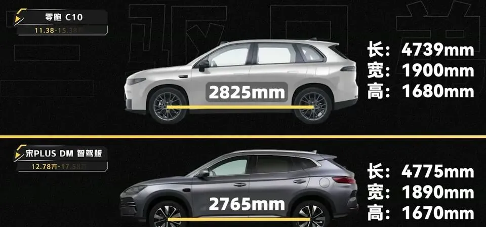 零跑C10在尺寸上有优势:车身尺寸上在轴距上C10还是会更大一点。