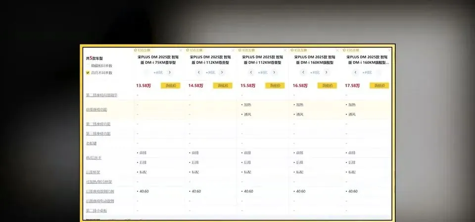 但我要泼点冷水:配置上宋PLUS更“省心”。比如座椅加热/通风:比亚迪宋Plus的中高配会标配,C10则全系都要选配。