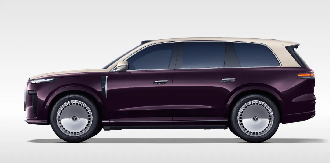 车身尺寸达5230×2025×1817mm,轴距3120mm。通过“四大黄金比例”塑造出巍峨挺拔的“旗舰站姿”。侧面摒弃凌厉腰线,采用“山海交融”的柔和曲面设计,光线照射下形成如山脊水波般的流动光影,消解了大型SUV的笨重感。