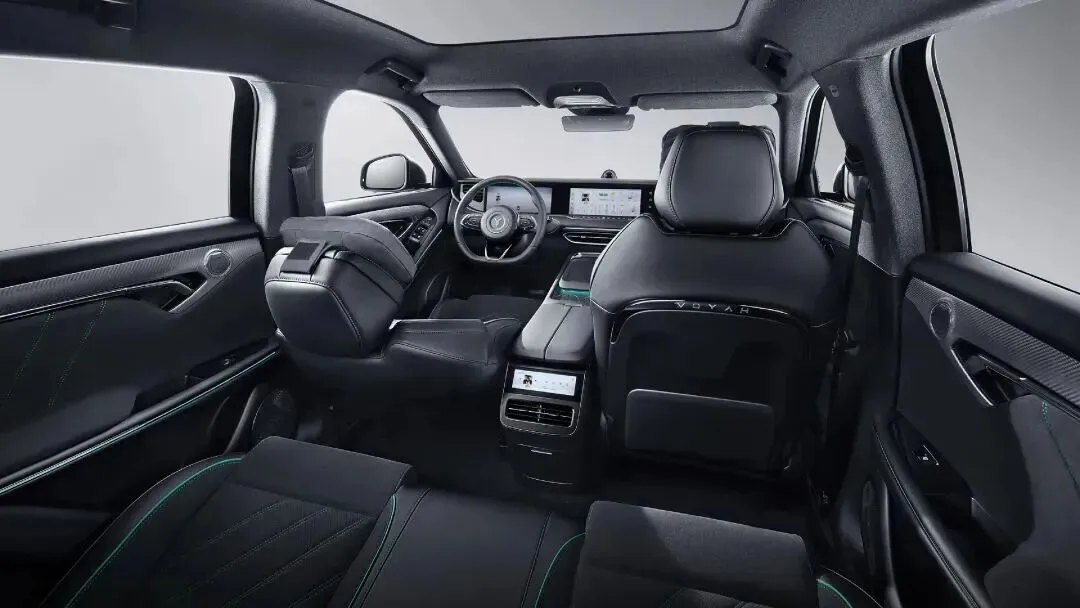 内饰三联屏、15.6英寸中控屏、氛围灯、全景天幕、360°影像,该有的都有。