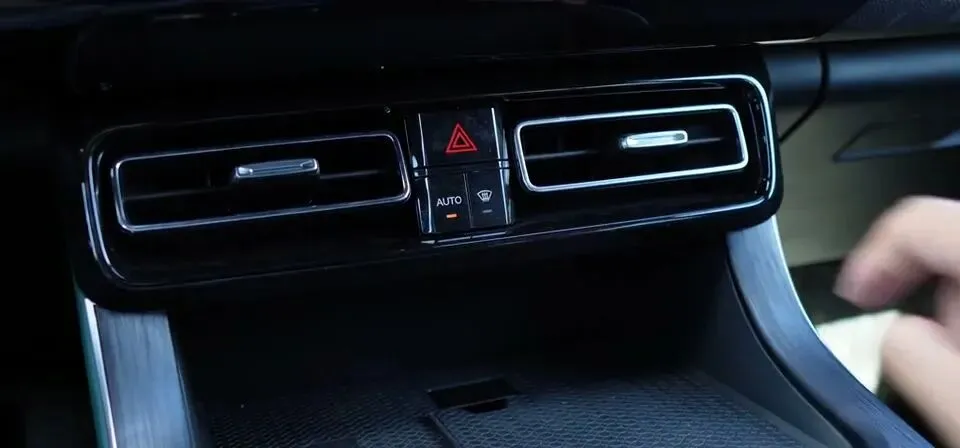 屏幕下方只保留了双闪、空调一键开启、一键除雾3个实体按键;下方置物台支持手机无线充电。行驶功能控制区也很简洁,水晶电子档杆、一键启动、驾驶模式、影像开关、自动驻车、电子手刹都在这。说实话,这套布局我个人挺喜欢:常用的留实体,不常用的交给屏幕,不拧巴。