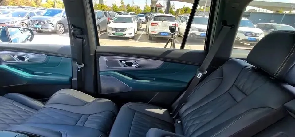 坐进来第一眼,黑色真皮座椅配菱形缝线工艺,属于“稳重但不廉价”。前排座椅带电动调节、加热和通风,驾驶座还有记忆功能——对一台家用SUV来说,这套就很完整。
