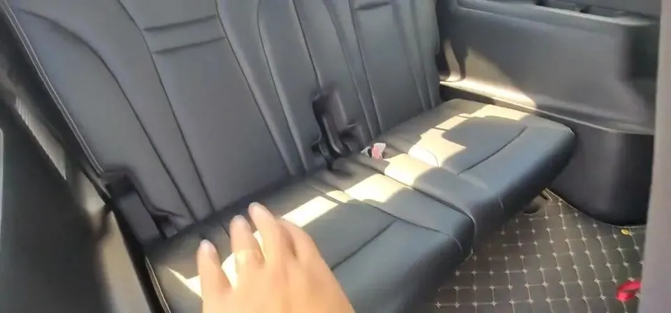 第三排我也坐了:坐垫相比地板会垫起一定高度,所以人不是直接坐在地板上。按照我的体型,坐第三排不能说局促,但也谈不上舒展——结论很明确:成年人中短途OK,小孩长途更合适。