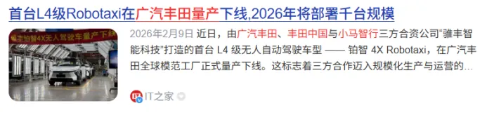并且特斯拉FSD在国内已覆盖20多个核心城市,小马智行与丰田、广汽丰田合作的量产版Robotaxi正式下线,计划2026年部署千台规模车队,商业化成果突出。