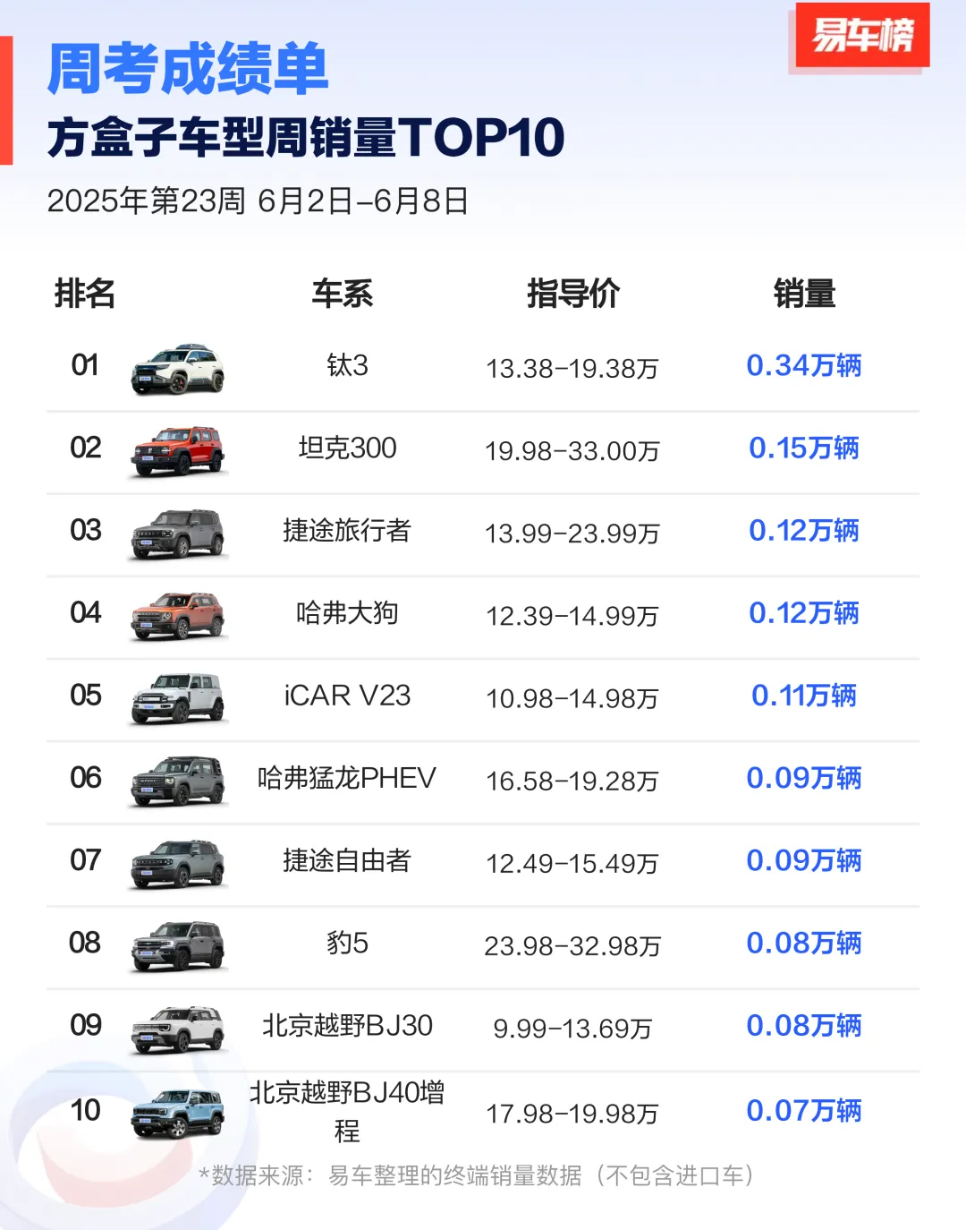 数据不会骗人。钛7能卖爆,不是因为便宜,而是戳中了当代人的命门:**城市太卷,生活太堵,方盒子一出现,就成了解药。** 它不光是车,是给心灵开的“野性窗口”。坦克300卖3929台,普拉多2252台,这些数据背后,是无数人对“自由”的执念。你想想,哪个打工人没幻想过:周末不加班,开车冲进深山,看云卷云舒?