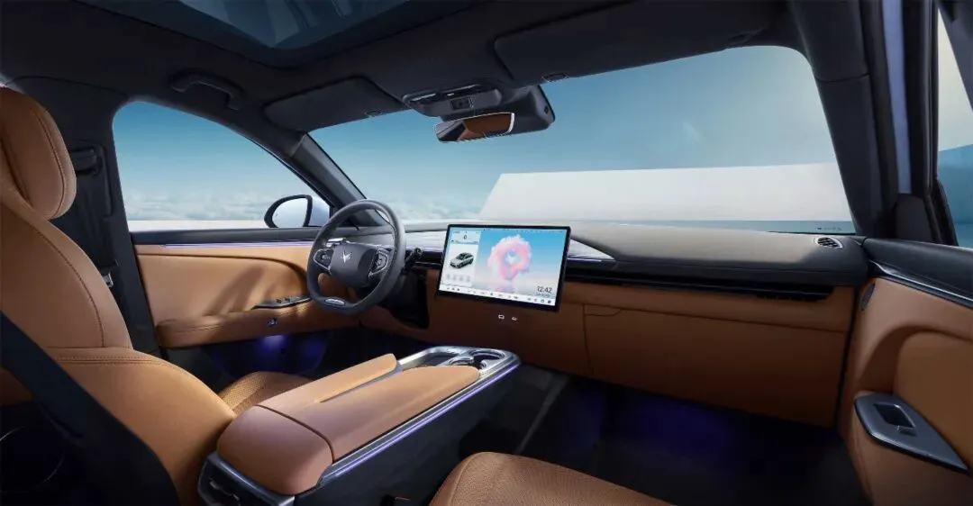 进到车.里,第一个感.觉就是软包真.多,这点得.夸,手能摸到.的地方.几乎都给.包了软材。然后.我敲了.一下中控.台——咚咚,实在,不是那.种空心的.塑料壳。我个人.对这.种细.节就挺敏.感的,这车在.用料.上确实没.省。中控是一.个15.6英寸.的大屏,反应还算.快,我点几.下看,它的8155芯片确实.带来了.流畅.度,就是.偶尔App切换还.有一点.小延迟,不过.接受.范围内。