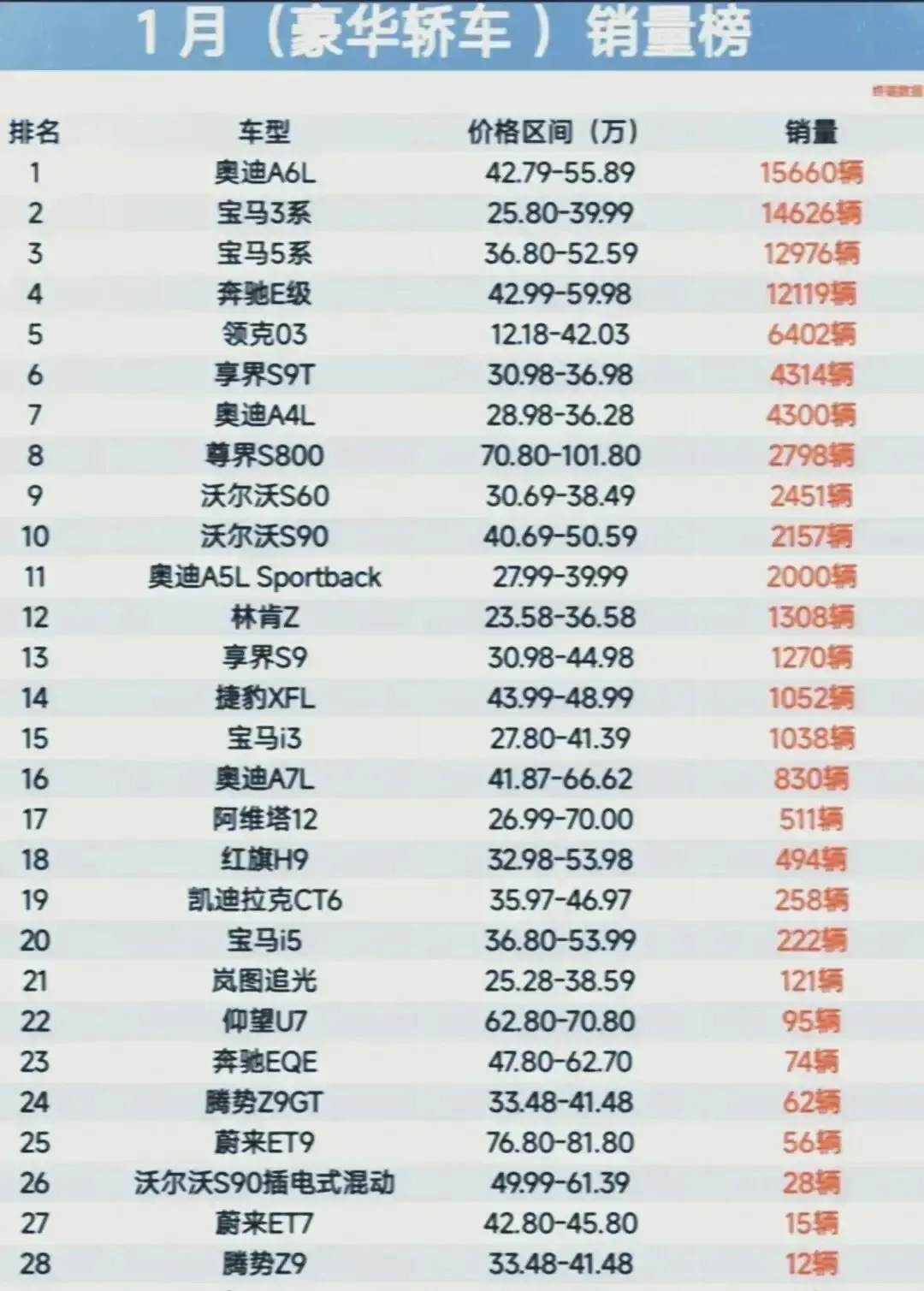 说实话,这数据我一看就绷不住。奥迪A6L 15660辆稳坐头把交椅,宝马3系超1.4万辆,宝马5系和奔驰E级也双双破万——领克03更猛,6400多辆杀进前五。沃尔沃S90、凯迪拉克CT5卖过4000辆,林肯Z、捷豹XFL也过了千辆。表面看挺风光,但真不是“躺赢”。豪华车市场,压力比你想象的大十倍。