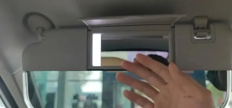 化妆镜盖板下半部分是一个半透明式的设计,上方依旧是有照明灯的。这个小细节我得说一句:它不解决“能不能开”的问题,但解决“用起来爽不爽”的问题。