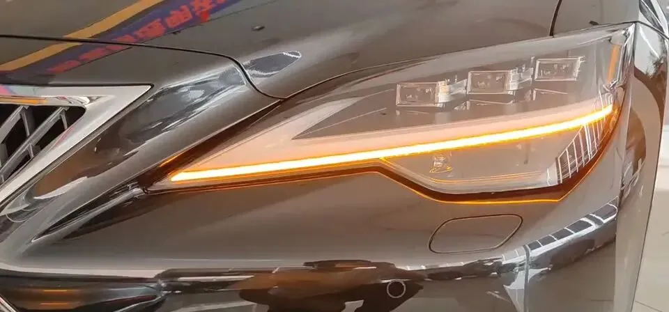 到前脸你会发现:雷克萨斯LS500h的前脸设计与ES相似,但大灯内部结构更为精致,下方有转向辅助灯,侧面有黄色反光板,是一款进口车型。
