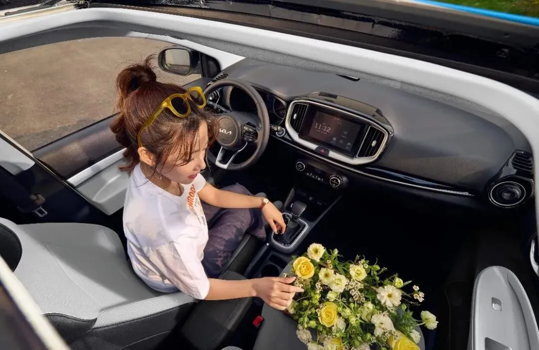 这车看着小,但轴距2570mm,后排坐俩成年人,腿还有两拳空。前脸是起亚家的虎啸造型,日行灯像回旋镖,不丑,也不瞎折腾。内饰是硬塑料,但容易擦,不怕娃撒果汁;化妆镜带灯,天窗电动,倒车影像和前后雷达都是标配,没玩“选装套路”。车机支持CarPlay,手机连上就行,不用学一堆车机逻辑。