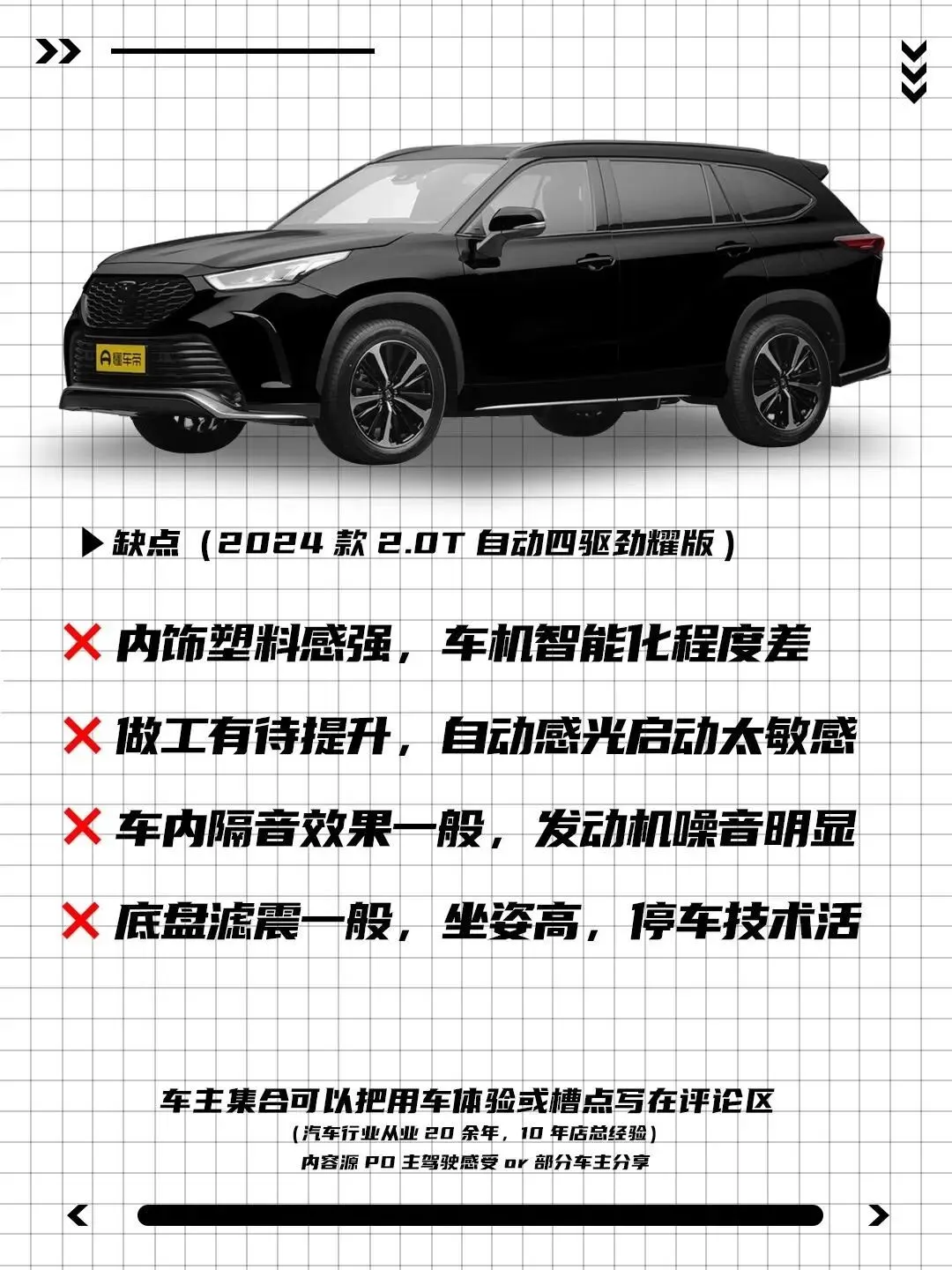 - 内饰质感一般:中控台和门板大量使用硬塑料,触感粗糙,缺少豪华感;
