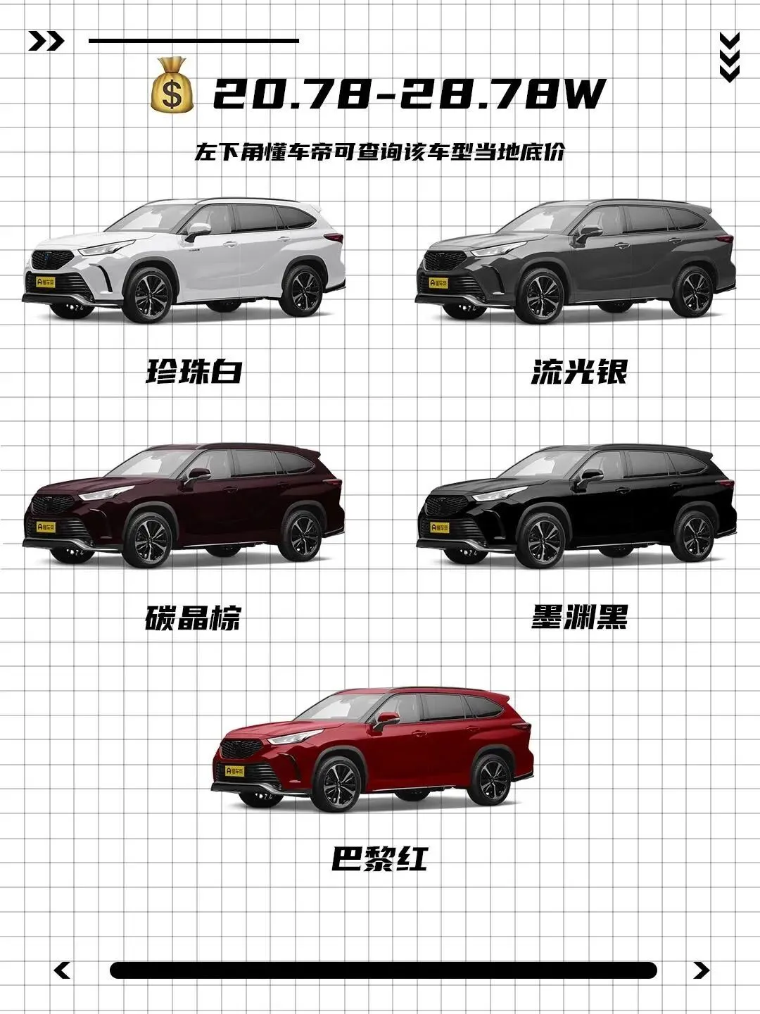 先说说这个车名——皇冠陆放,听起来就很"丰田"。它是汉兰达的姊妹车型,主打家用舒适和省油平顺。今天就从外观、空间、动力、优缺点四个维度,看看这台车是不是真的"全家出游的幸福刚需"。