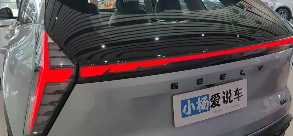 车尾同样是那种“与众不同的设计”,第一眼还是不太像吉利。靠什么认?靠后面那个大大的吉利黑色LOGO和左下角的“吉利汽车”。