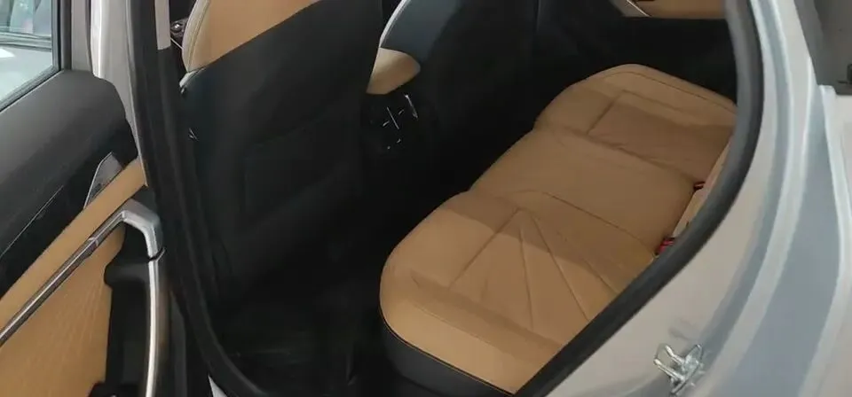拉开车门,先给你个细节:四个车门把手采用抗菌材料。主驾驶舒适进入之后,映入眼帘的是棕黑拼接内饰,坐下去第一感受就是:座椅非常柔软。
