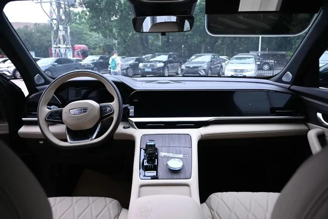 内饰方面吉利现在这套三连屏的思路基本上全系都在推,星越L上面也是这个配置,12.3英寸的仪表加13.2英寸的中控屏,再加个副驾娱乐屏,视觉效果确实上来了。用的是高通骁龙8155芯片,车机流畅度这块我之前试过几次,日常用微信导航什么的基本不卡,语音识别率也还可以,至于那些什么生态应用这些我就不展开说了,反正该有的功能基本都有。