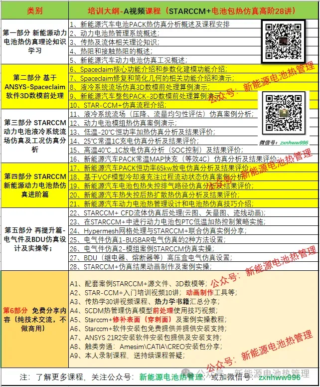 了解更多课程(《FLuent动力电池包PACK热仿真28讲》、《动力电池包PACK结构设计40讲》;加微信号:zxnhww996