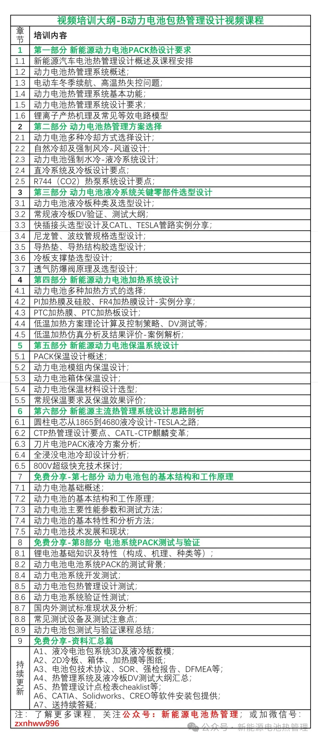 此外,《B视频教程_新能源汽车动力电池PACK热管理系统设计33讲》,结合实际工程应用,持续答疑,并送液冷板、液冷电池包3D数模等文件: